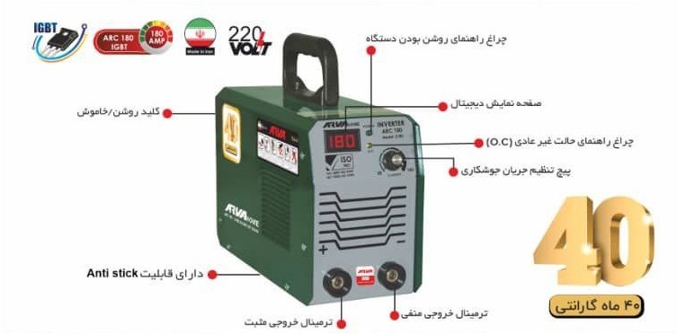 اینورتر 180 امپر نک ولوم اروا که مناسب جوشکاری با سیم جوش 2.5 و 3.2 میباشد و دارای وزنی سبک و قابیلت اسان میباشد