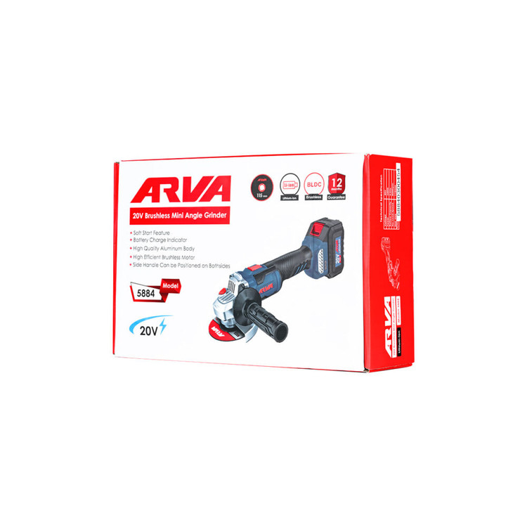 اقلام همراه: ۱ عدد دسته کمکی، آچار مهره، گارد محافظ، شارژر و ۲ عدد باتری لیتیوم یونی ۲۰ ولت ۴ آمپر ساعت