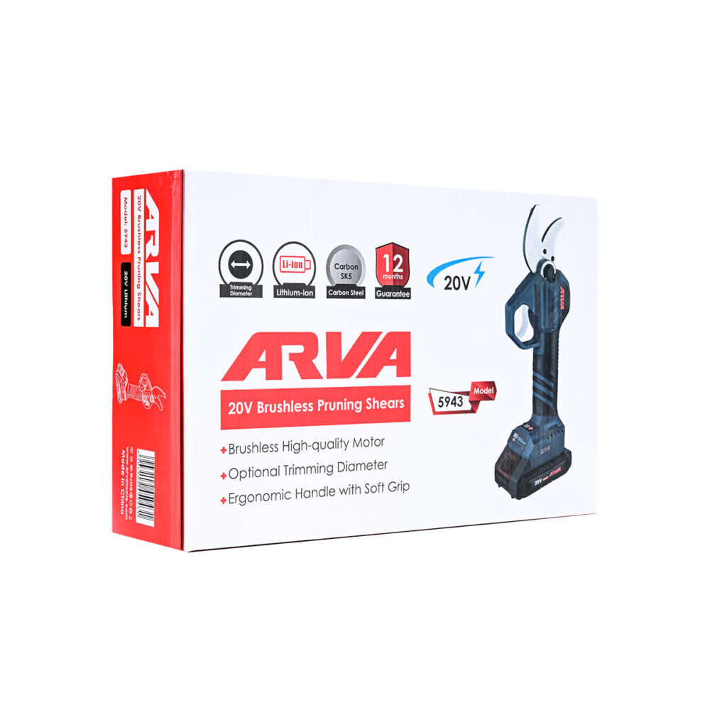 اقلام همراه: شارژر، ۲ عدد باتری ۲۰ ولت لیتیوم یونی ۲ آمپر ساعت، یک بطری روغن و ۳ عدد آچار