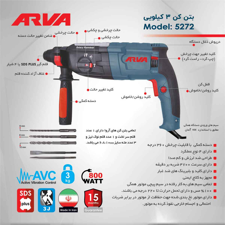 اقلام همراه: دسته کمکی – قلم نوک تیز – قلم سر تخت – 3عدد مته – یک جفت ذغال – عمق سنج