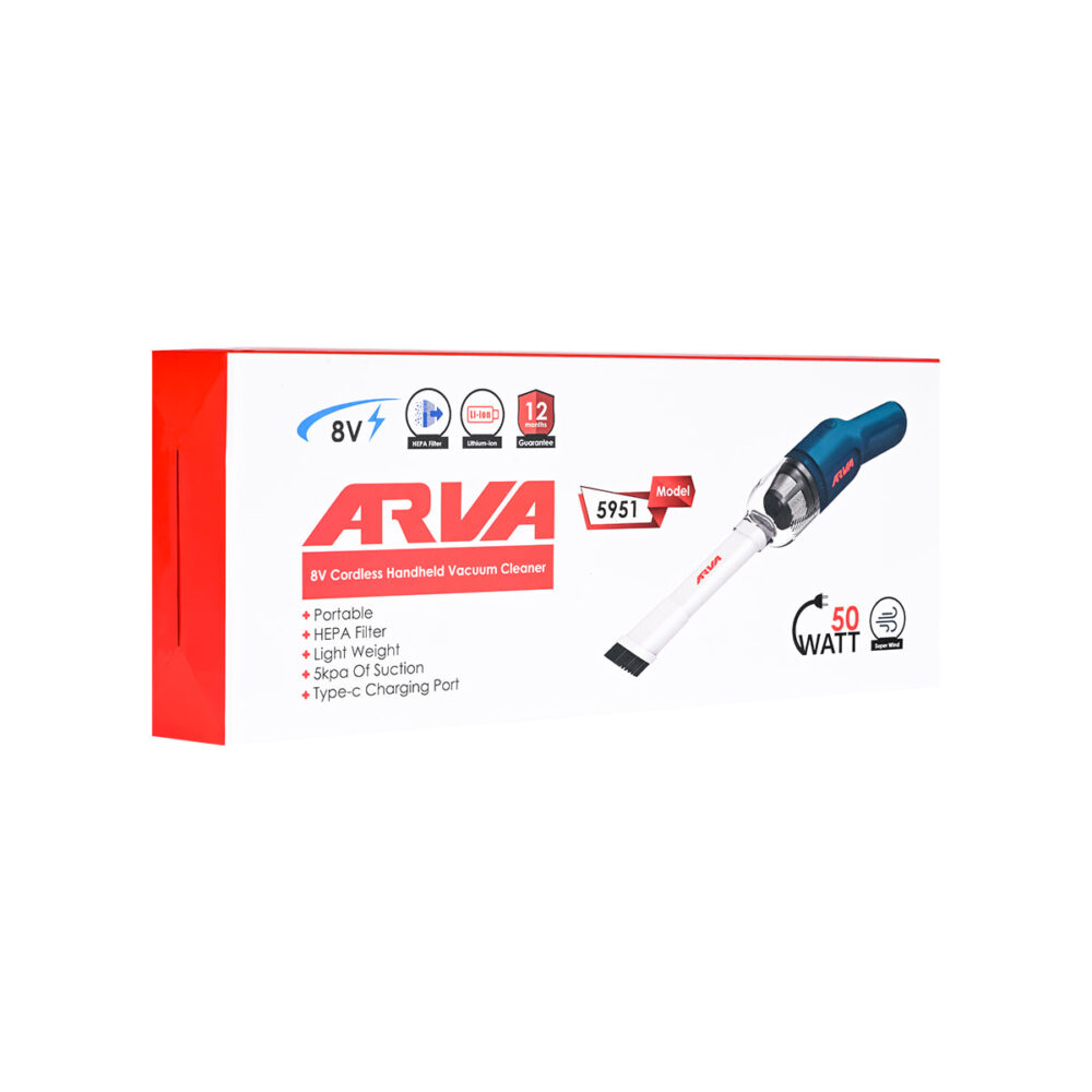 ولتاژ: ۸ ولت توان: ۵۰ وات جریان هوا: ۱۵/۲۰ دسی متر مکعب بر ثانیه حداکثر مکش: ۵ کیلو پاسکال شدت صوت: ۸۲ دسی بل مدت گارانتی: ۱۲ ماه متعلقات: یک عدد برس، یک عدد فیلتر، یک عدد لوله مکش مسطح، یک عدد کابل شارژر مجهز به فیلتر با تکنولوژی HEPA و قابل شستشو طراحی سبک با امکان آزادی عمل و تحرک بیشتر دسته ارگونومیک برای کاربری راحت مجهز به چراغ نشانگر وضعیت و میزان شارژ باتری دارای درگاه شارژ تایپ C دارای نشان و استاندارد CE و GS